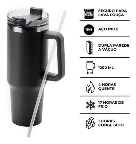 A Caneca Copo Térmico Inox 1200ML com Canudo é a escolha ideal para manter suas bebidas frias ou quentes por mais tempo. Fabricado em aço inoxidável de alta qualidade, oferece isolamento térmico eficiente e resistência para uso diário. Seu design ergonômico e tampa com vedação evitam vazamentos, enquanto o canudo reutilizável proporciona mais praticidade. Disponível em cores sortidas, é perfeito para uso em casa, escritório, academia ou viagens. Capacidade de 1200ML para maior hidratação