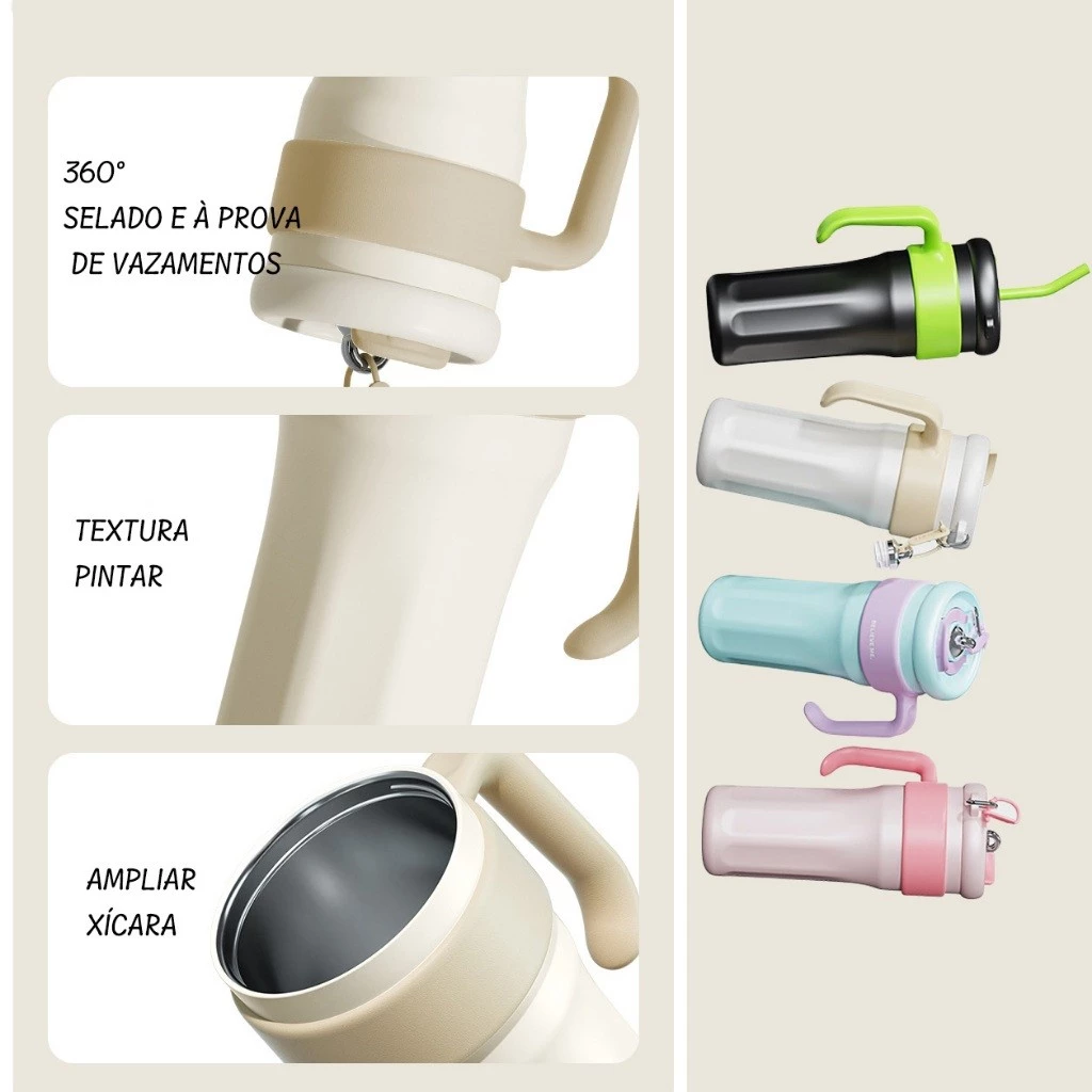 É um produto versátil, pois pode ser usado como copo térmico para você ir a eventos 🎉, bares 🍸, etc., e como garrafa térmica para usar durante caminhadas 🥾, viagens ✈️, academia 🏋️♀️, etc.